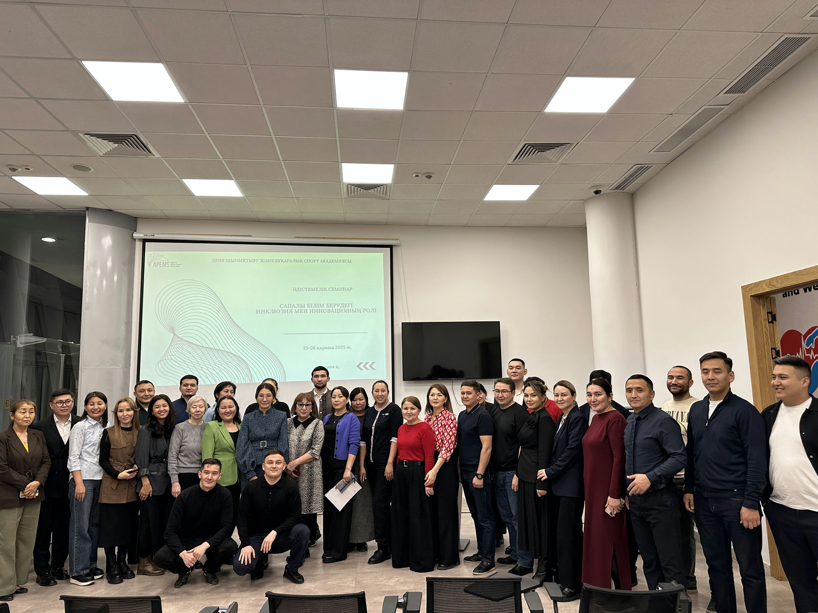 Семинардың екінші күнінің бағдарламасына сәйкес, PhD, қауымдастырылған профессорлар М.З. Сейдина «Болашақ денешынықтыру және спорт педагогтерін даярлаудағы инклюзивті білім беру мәселелері», А.Дәлелбекқызы «Өзге ұлт өкілдеріне қазақ тілін оқытудағы инновациялық технологиялар», Д.Е.Туржанова «Спорттық биомеханикада жасанды интеллекті қолданудың заманауи бағыттары» мен сеньор-лекторлар Ж.Ж.Төлегенова мен А.М. Искакова «Инклюзивті білім берудегі инновациялық тәсіл» білім беру үдерісіндегі инновациялық және инклюзивті тәсілдерге арналған мазмұнды баяндамаларын ұсынды. Қорғалған баяндамалар төңірегінде семинарға қатысушылар оқыту сапасын арттырудың тиімді жолдарын және білім алушылар үшін мүмкіндіктерді кеңейтуді талқылай отырып, идеялармен және практикалық тәжірибелерімен алмасты.