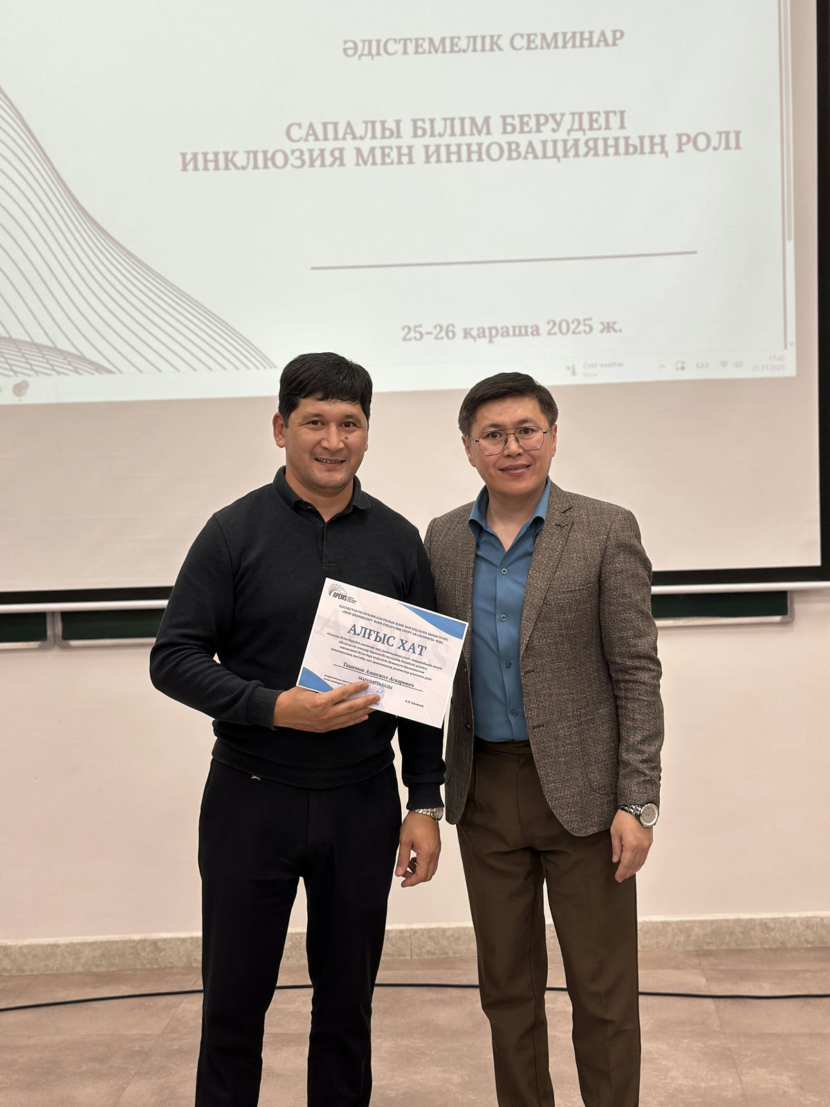 Іс-шара соңында баяндамашылар академиялық мәдениеттің және оқу-әдістемелік жұмыстың дамуына қосқан елеулі үлестері үшін алғыс хаттармен марапатталды.